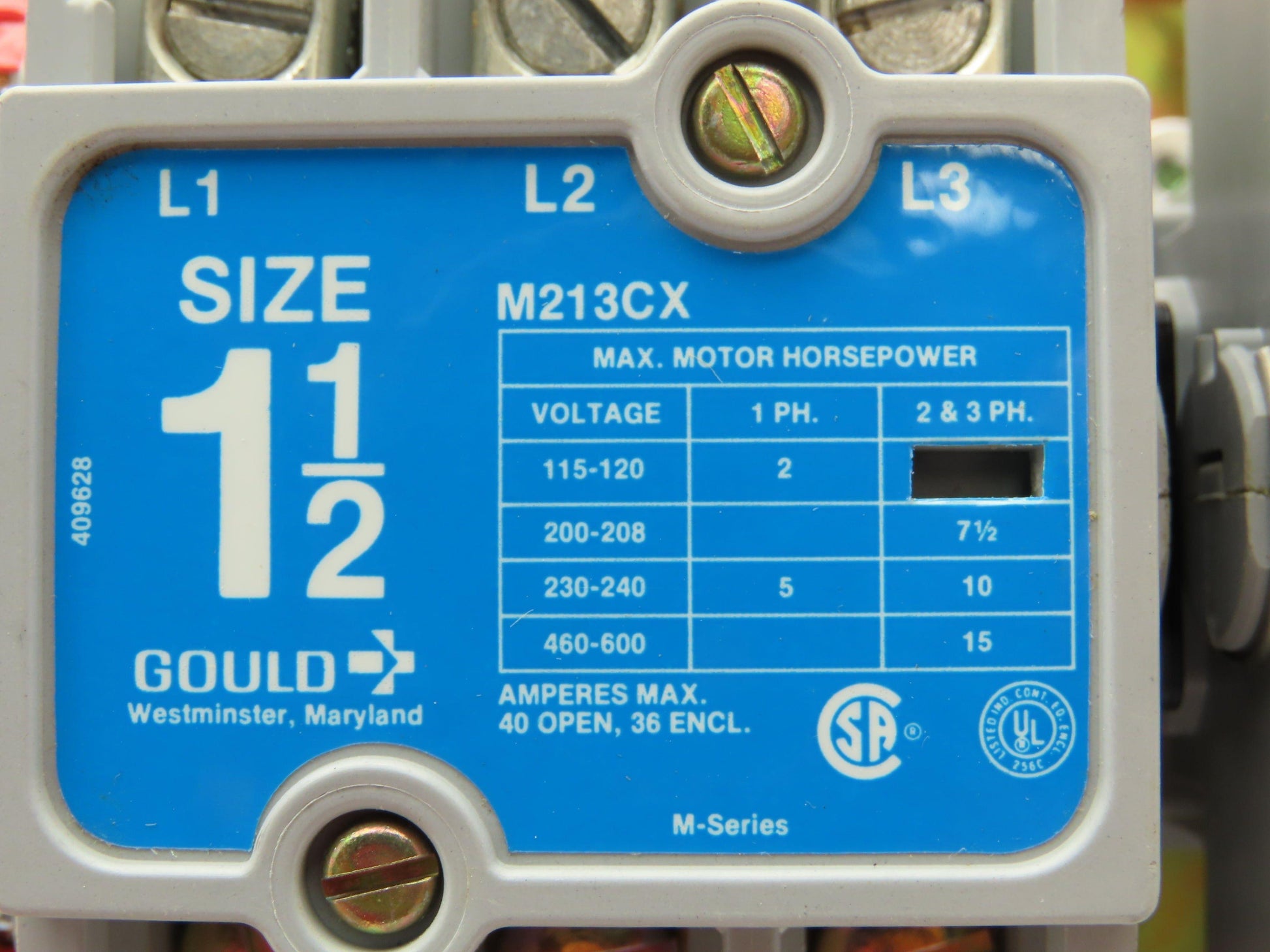 Telemecanique M213CX12L Gould Reversing Motor Starter Size 1 1/2 600V 3 Ph 15Hp