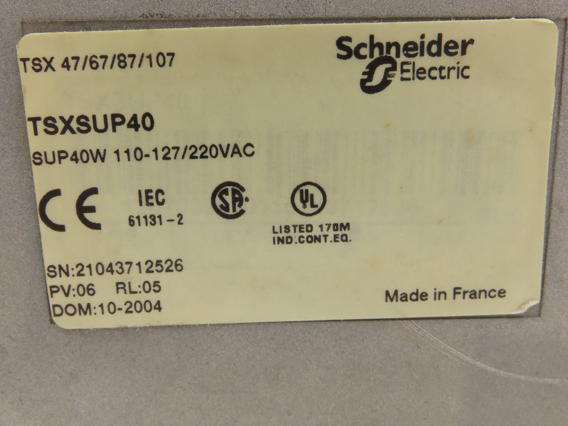 Telemecanique TSX SUP 40 Power Supply 120/240v 1Ph 60Hz In 24vDC 2A 40W Out