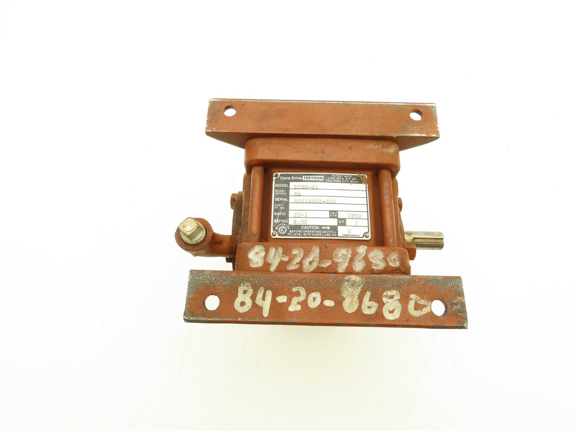 Textron Cone Drive HU20-C1 Speed Reducer Gearbox 10:1 Ratio 2.5Hp 175rpm