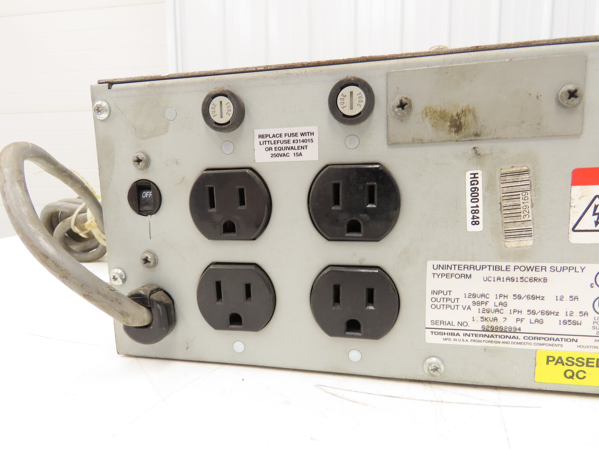 Toshiba UC1A1A015C6RKB 1400RE Series Uninterruptible Power Supply UPS 120V 1PH