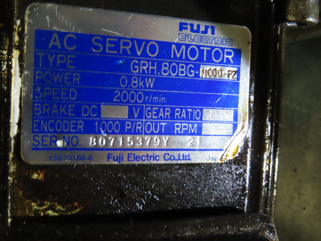 Toyoda CNC Lathe Spindle Cartridge Fuji Servo Motor 2000Rpm GRH.80BG-N000-PZ
