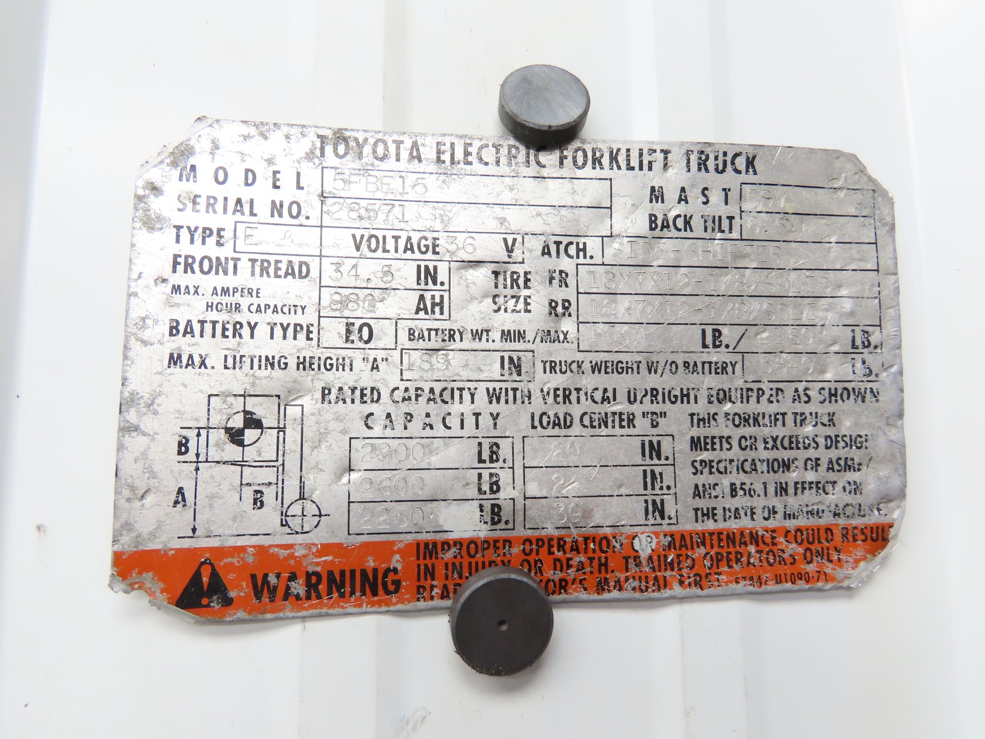 - This was taken off of a Working Toyota 5FBE15 forklift.