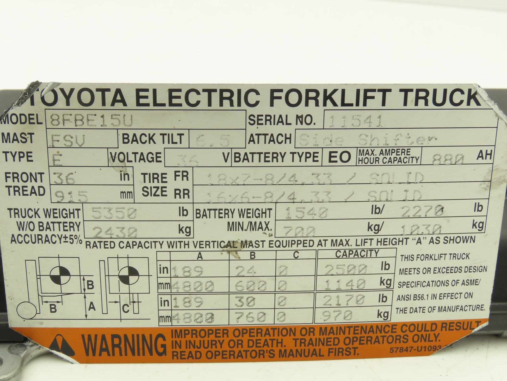 - This was taken off of a Working Toyota 8FBE15U forklift.