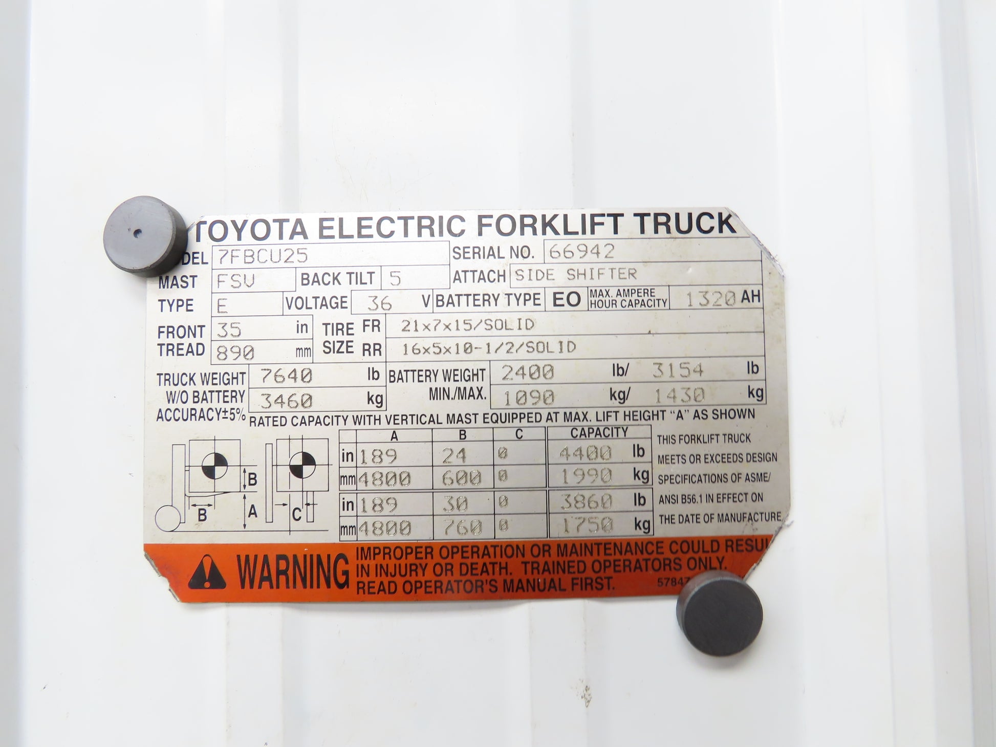 - This was taken off of a Working Toyota 7FBCU25 forklift.