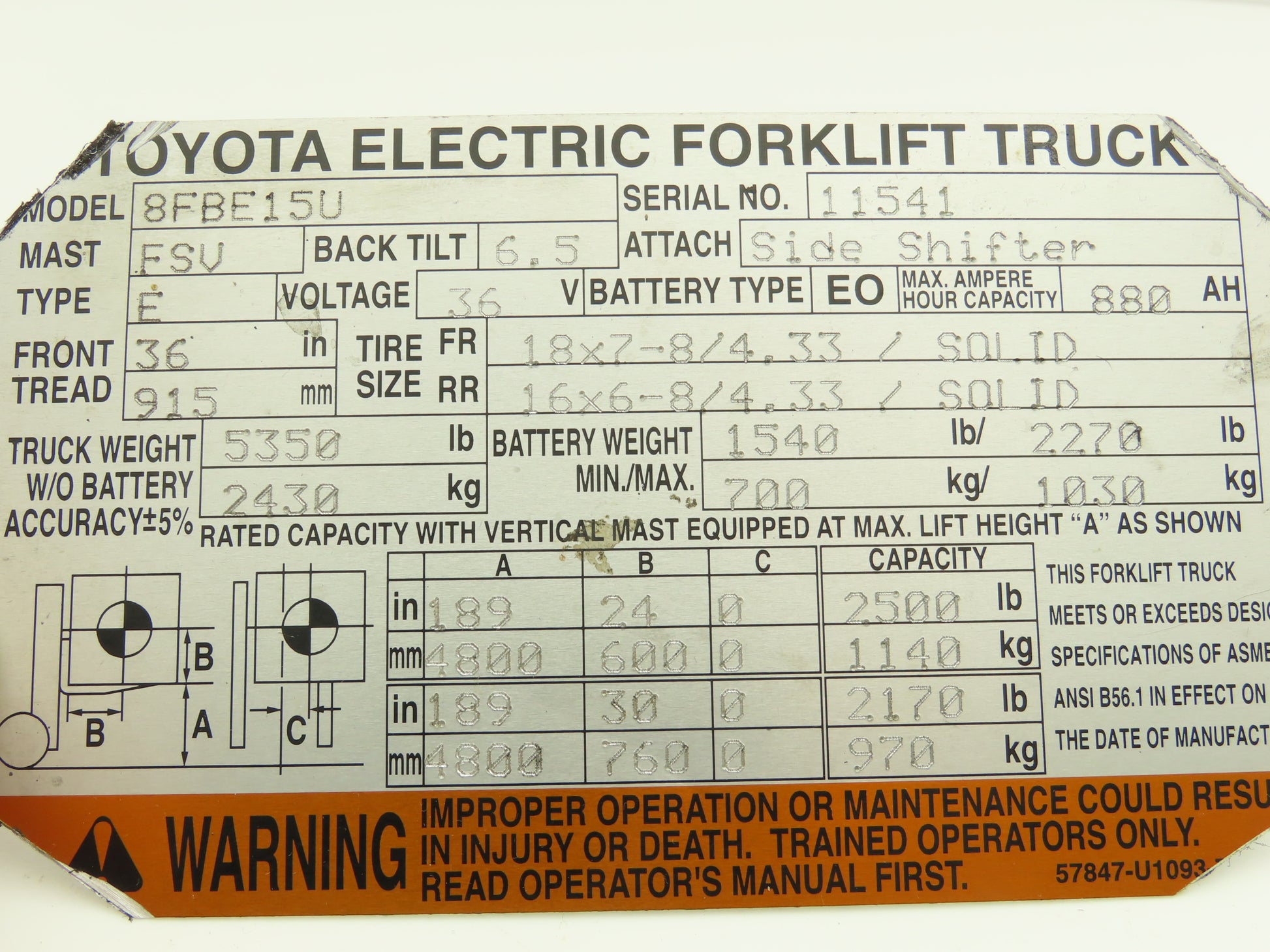 - This was taken off of a Working Toyota 8FBE15U forklift.