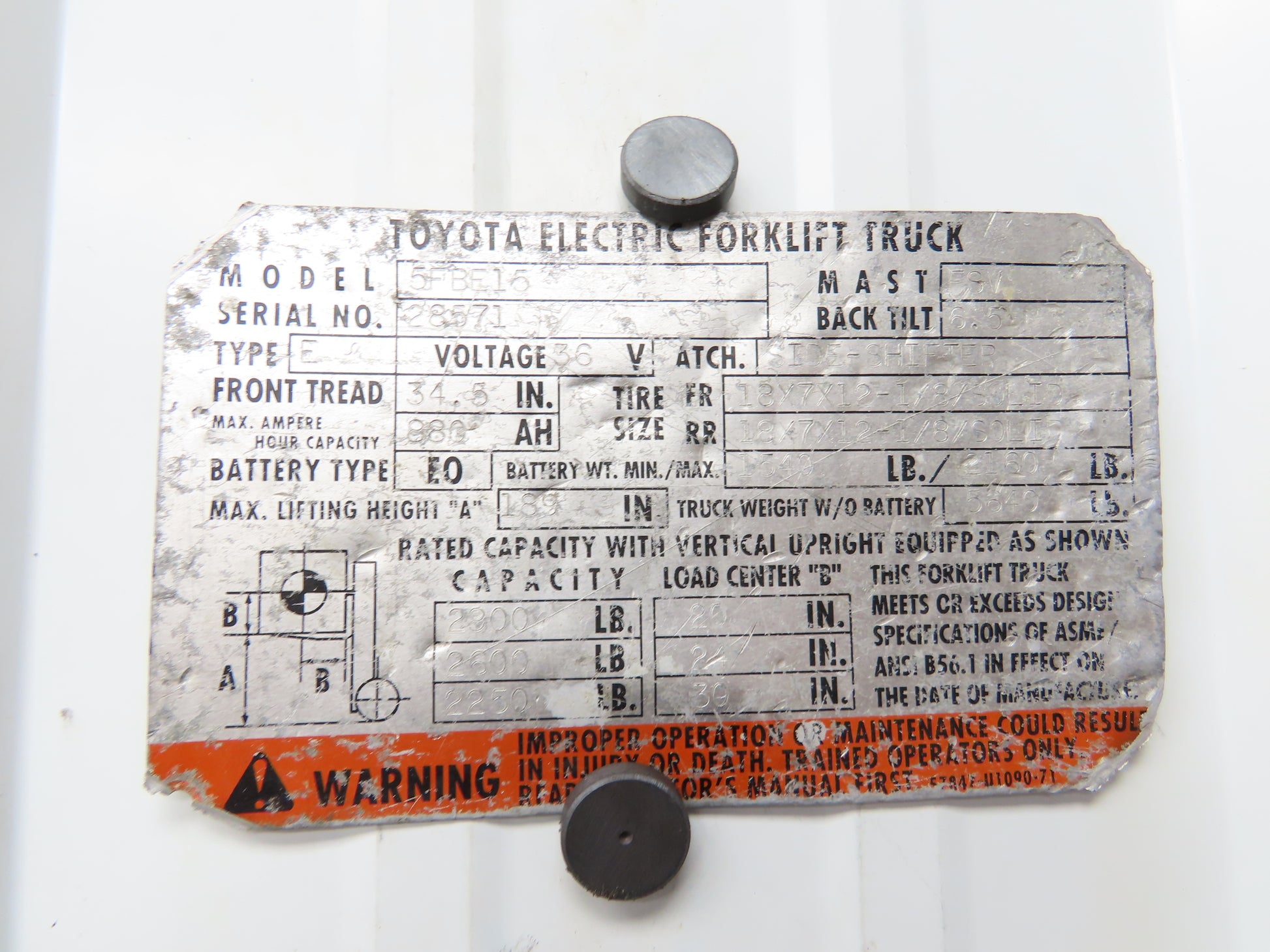 - This was taken off of a Working Toyota 5FBE15 forklift.