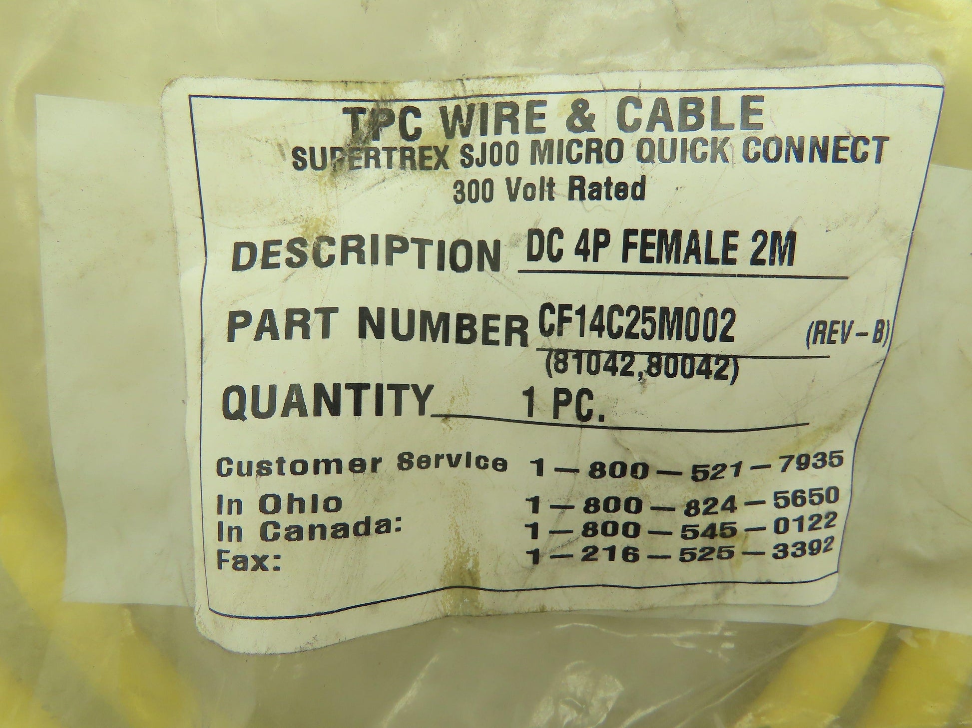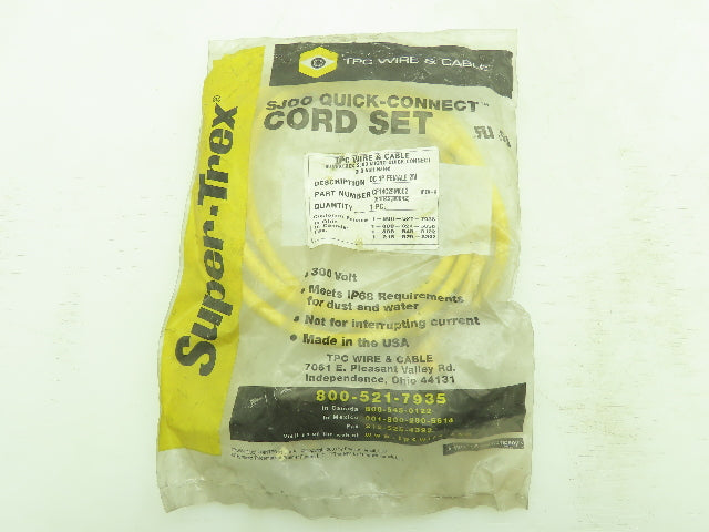 TPC Wire & Cable CF14C25M002 SJOO Quick Connect Cord Set 300V DC 4P Female 2M