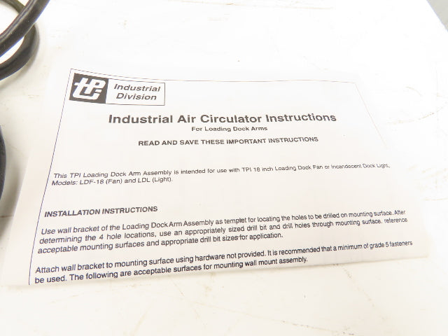TPI Industrial LDA-60 Heavy Duty Loading Dock Light/Fan Mounting Arm Assy 60"