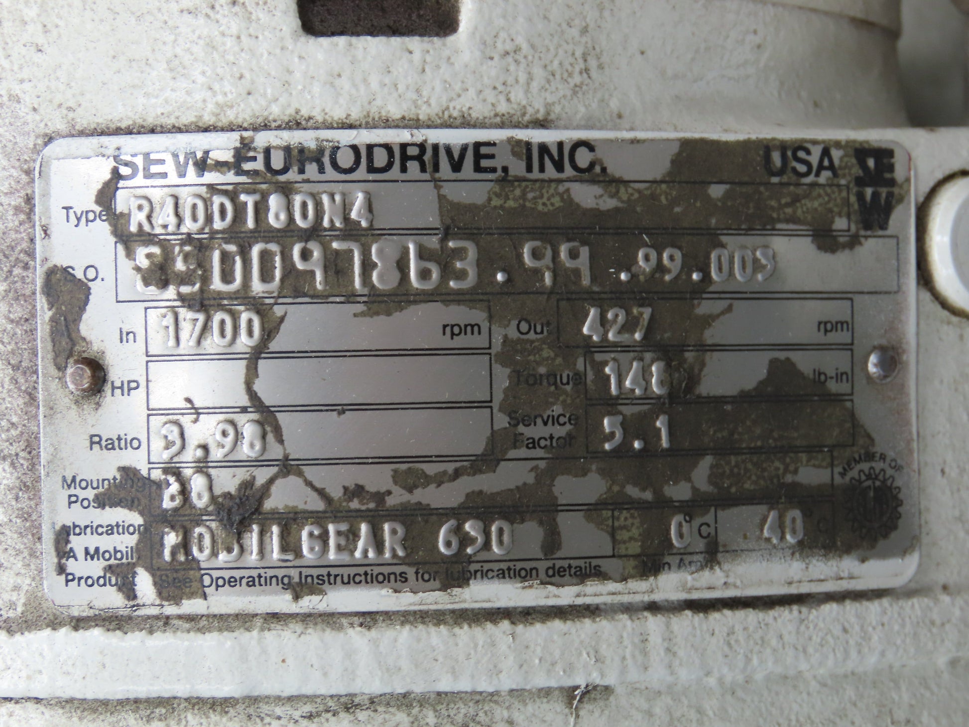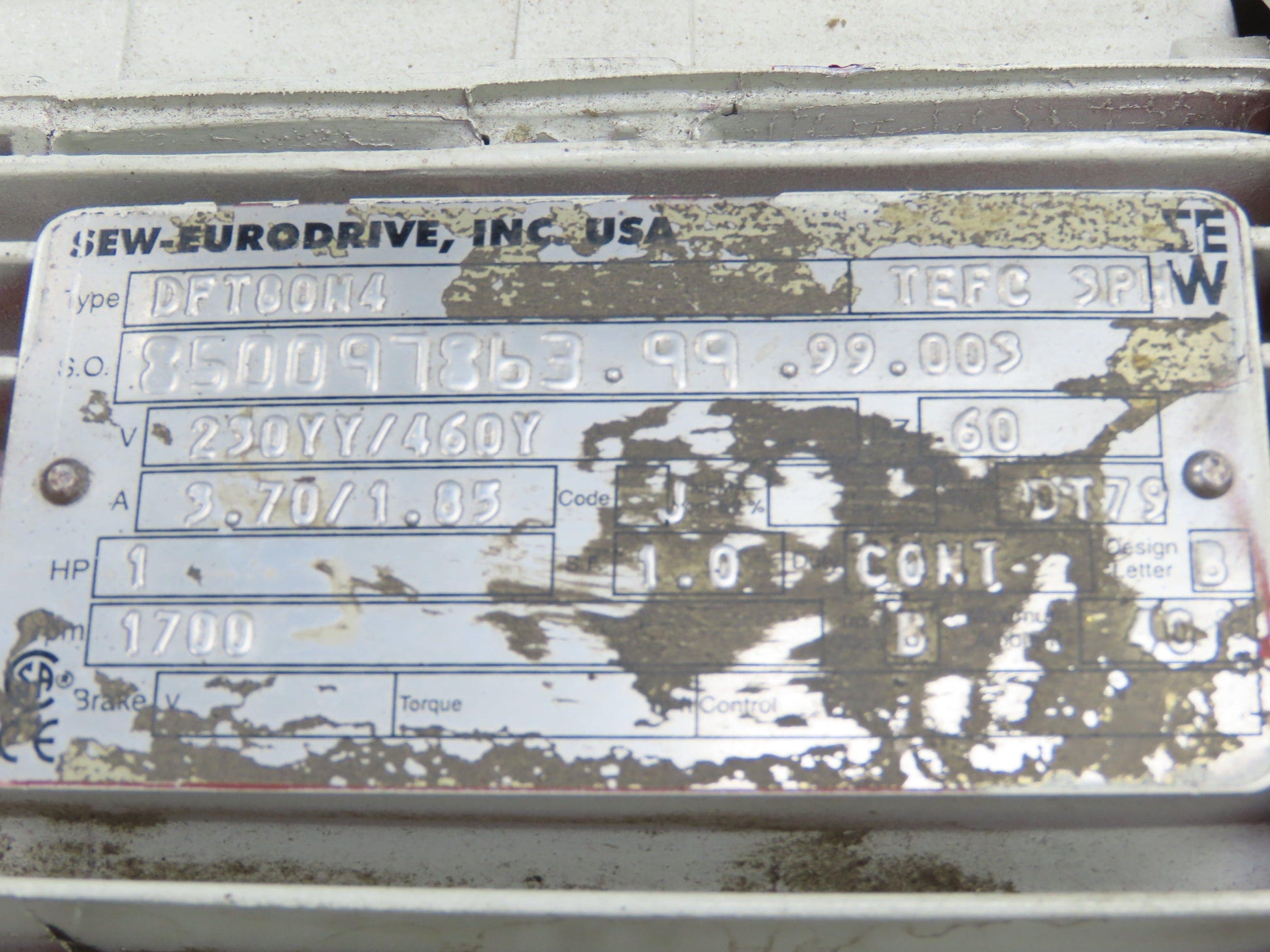 - Sew-Eurodrive Gearmotor 1Hp 230/460V 3PH. Chain Drive.