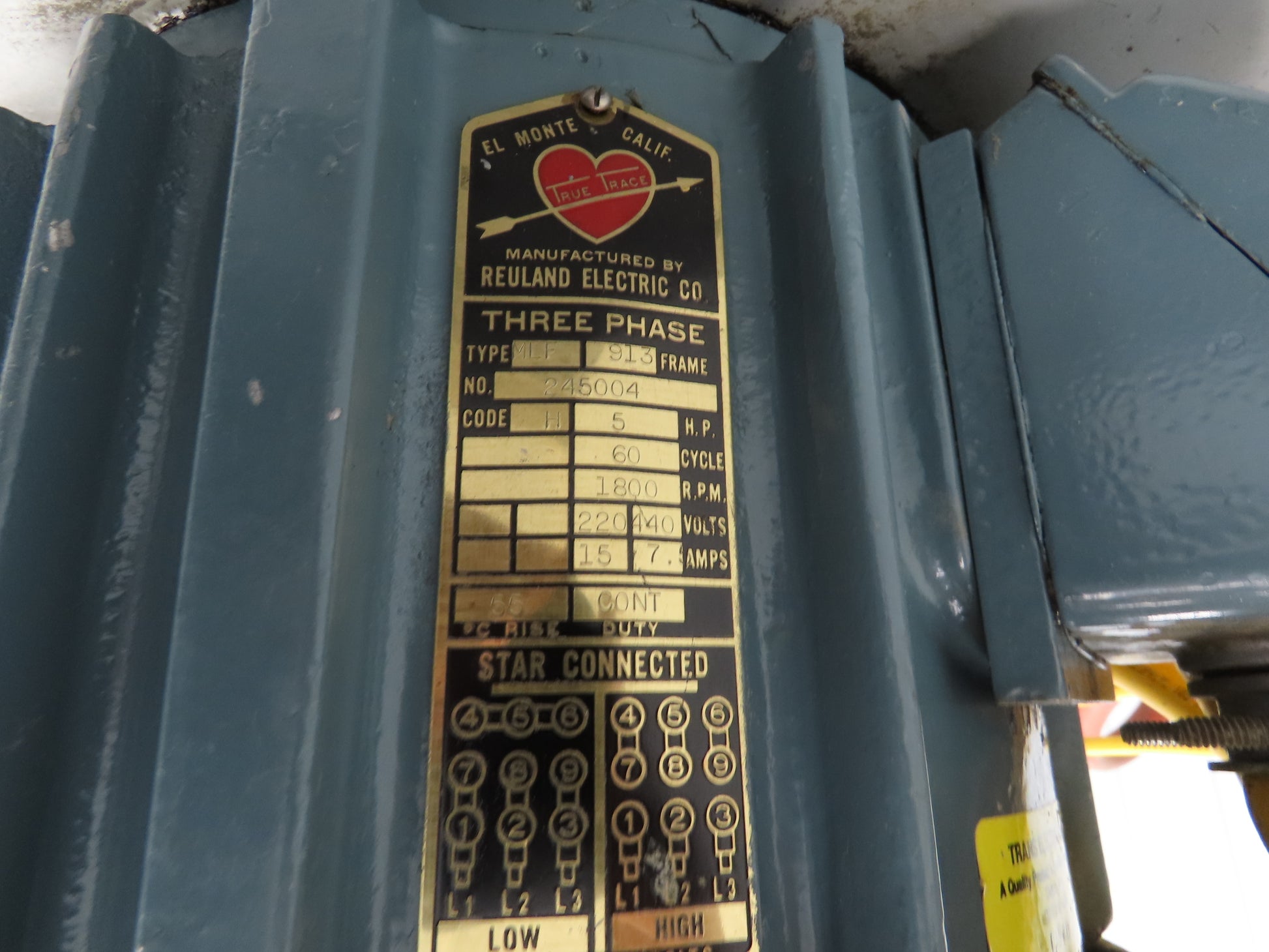 - Motor Specs: 220/440V Wired for 230V