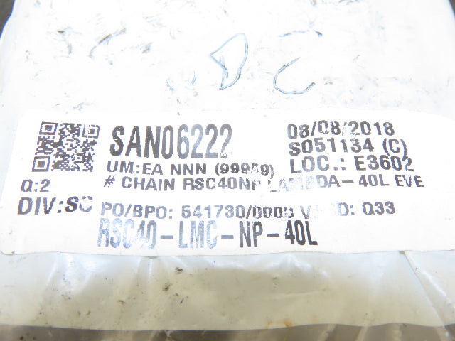 Tsubaki RSC40 LAMBDA Roller Chain 40 Size 1/2" Pitch 40 Links 20" Long