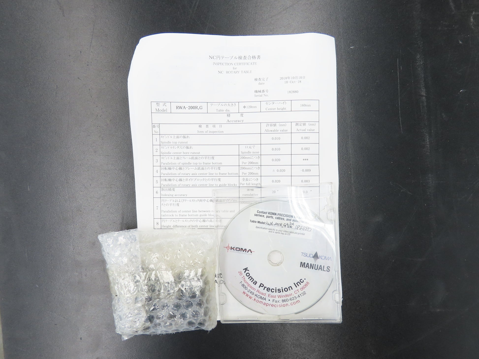 Tsudakoma Koma Precision RWA-200R-G CNC Rotary Indexer Clamp Table 200mm Dia 8"