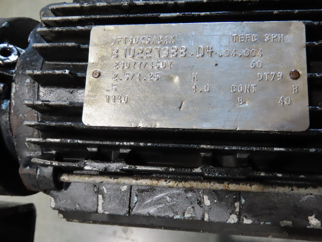 - Gear Motor: 1/2Hp 1140 RPM 230/460V 3PH. 137:1 Gearbox.