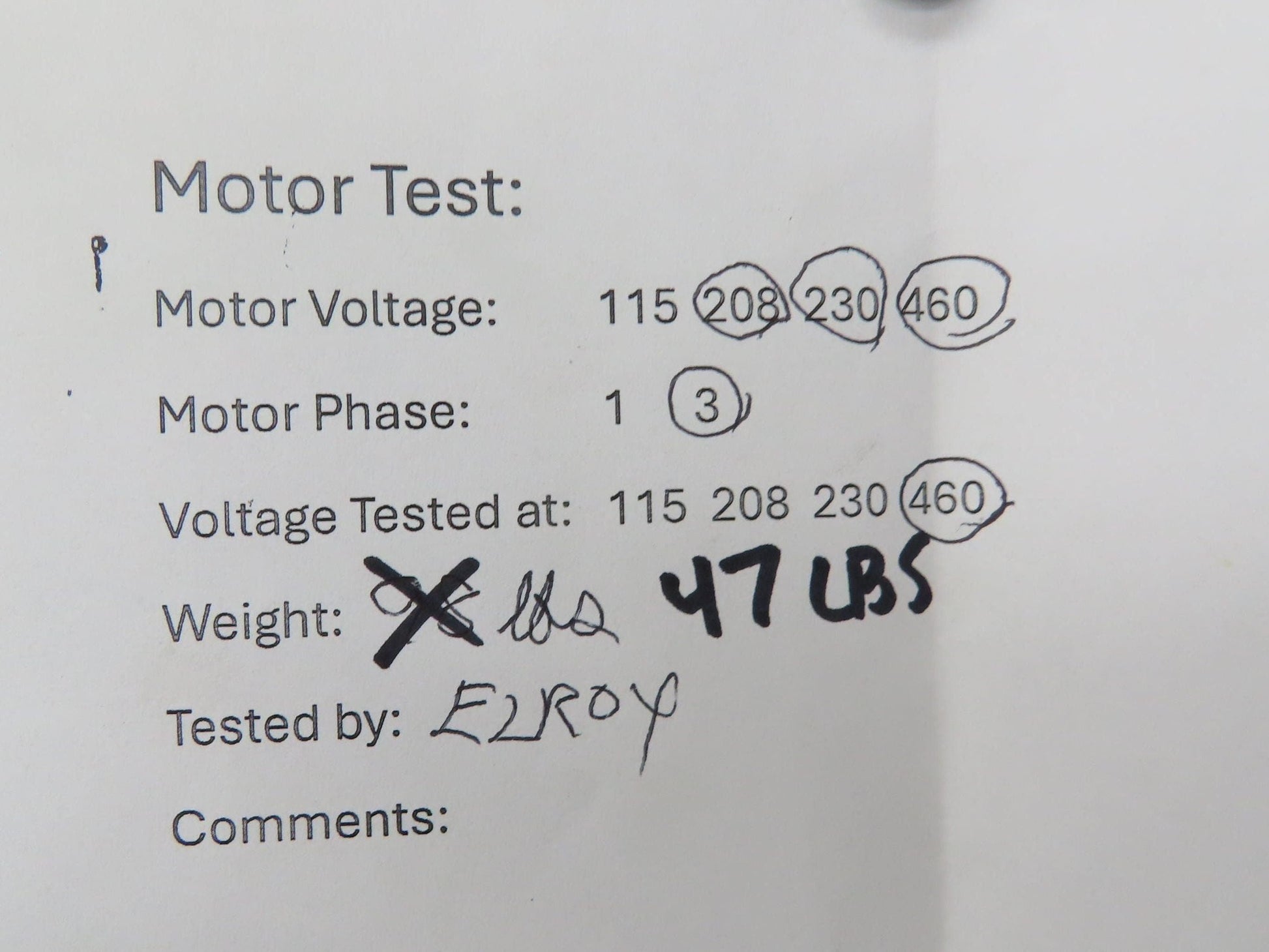 - Motor is in working condition, tested and wired for:: 460v