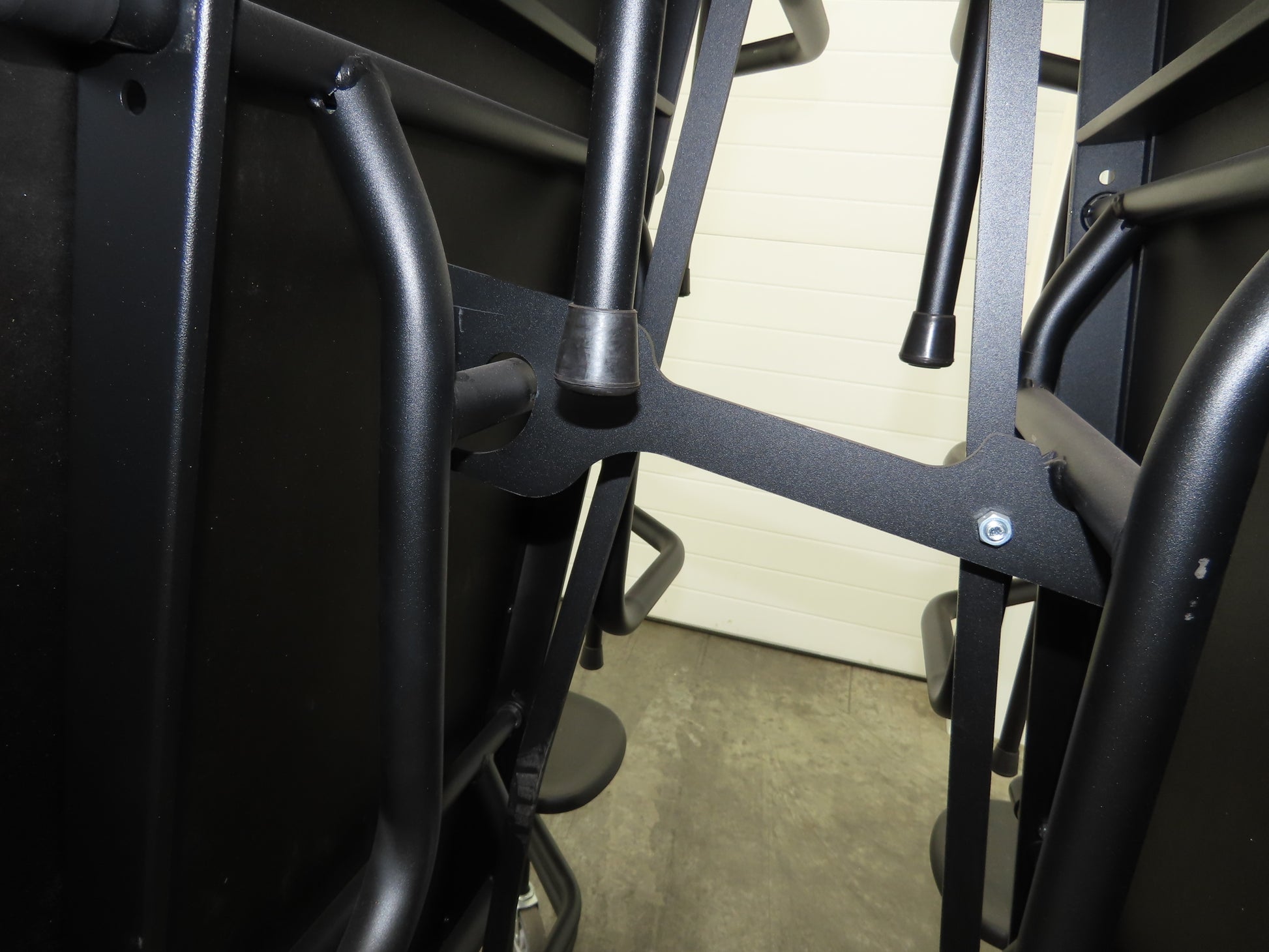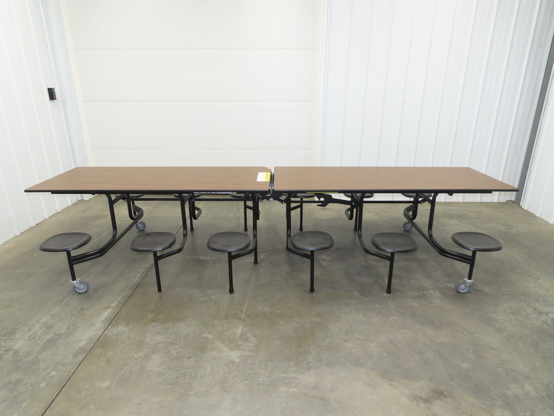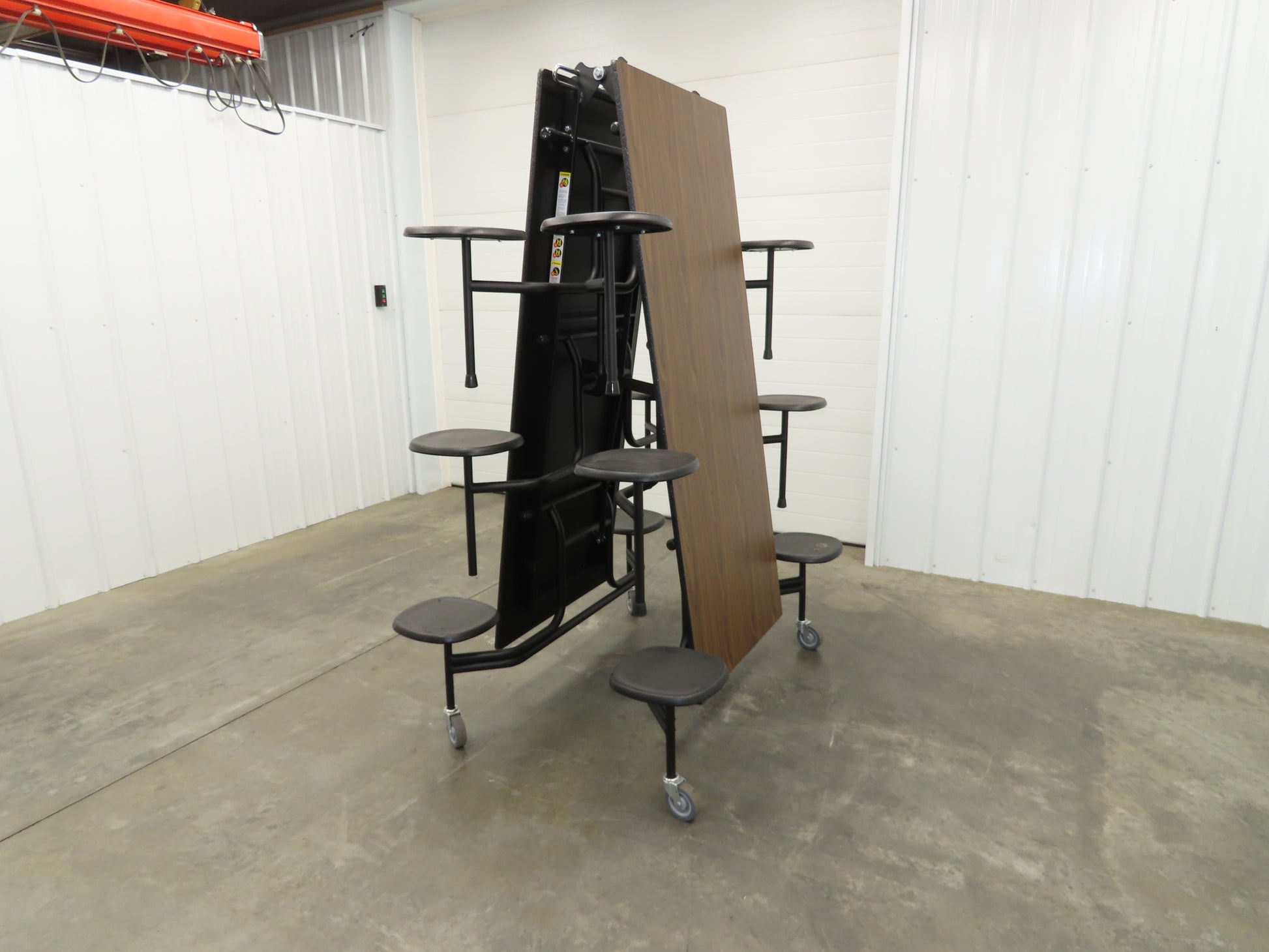 - 12 stool cafeteria table. Mobile type for easy storage