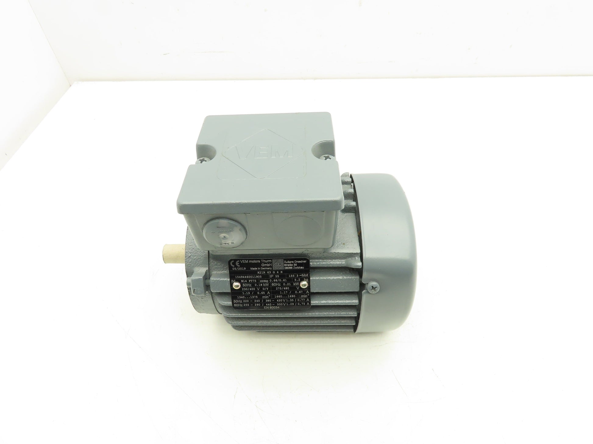 VEM K21R AC MOTOR 0.21kW 3PH 275/480VAC 1690RPM IEC 63 Frame IP55