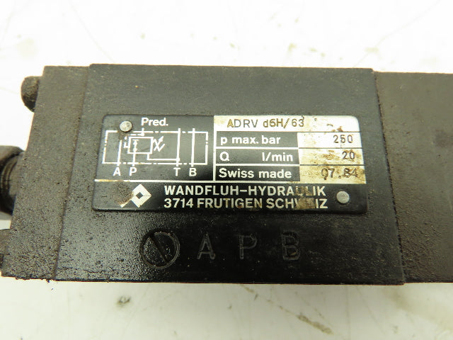 Wandfluh Hydraulik ADRVdB6H /63 Hydraulic Valve Adjustable Pressure MAX 250 BAR
