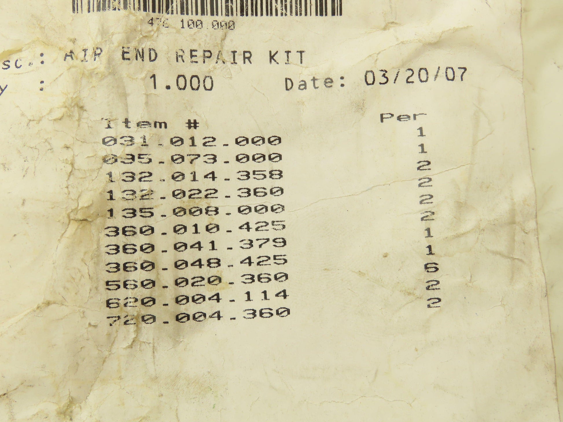 Warren Rupp Sandpiper 476.100.000 Air End Repair Kit