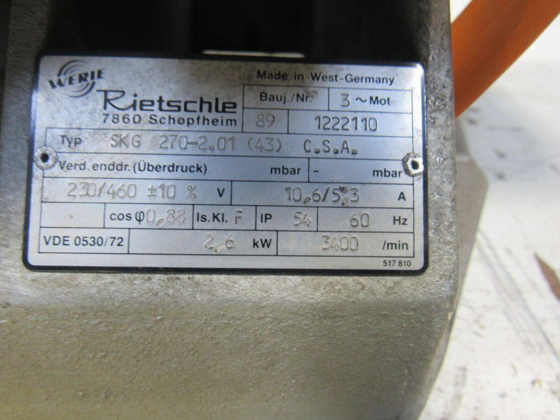 Werie Rietschle SKG 270-2.02 Regenerative Vacuum Blower 230/460V 2.6Kw