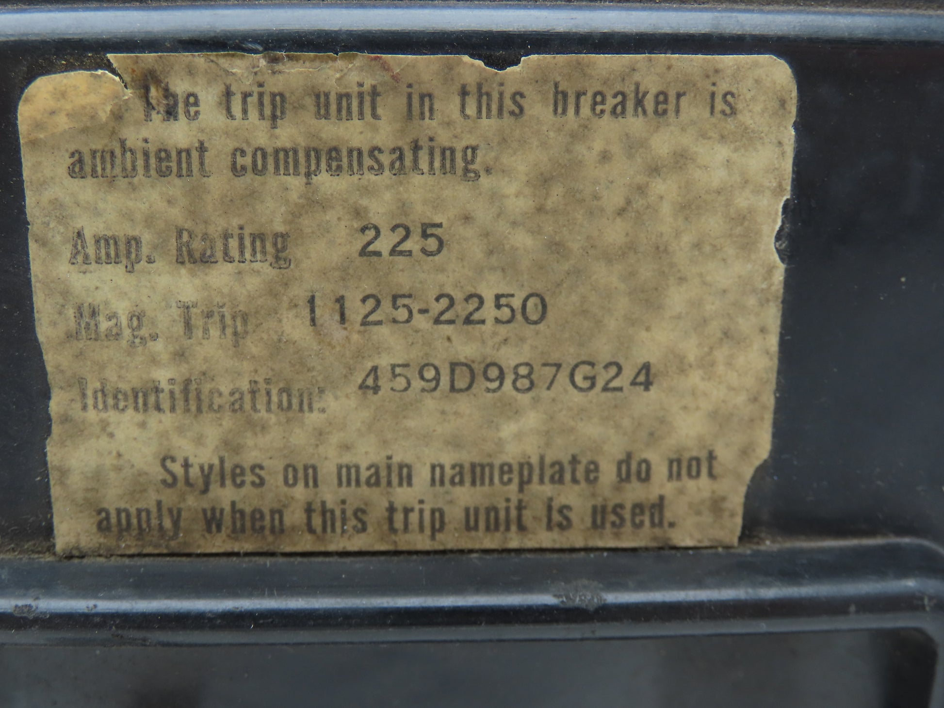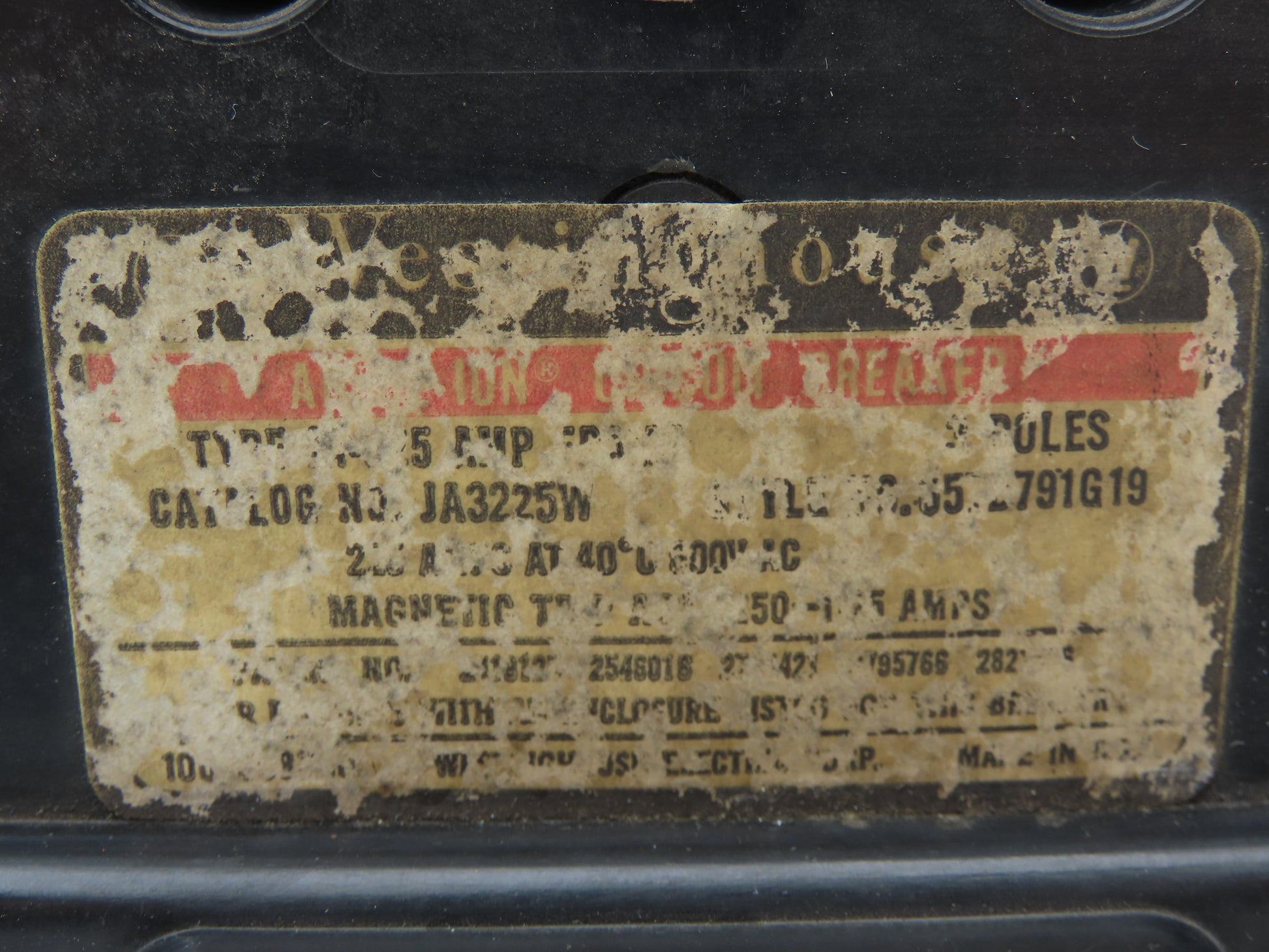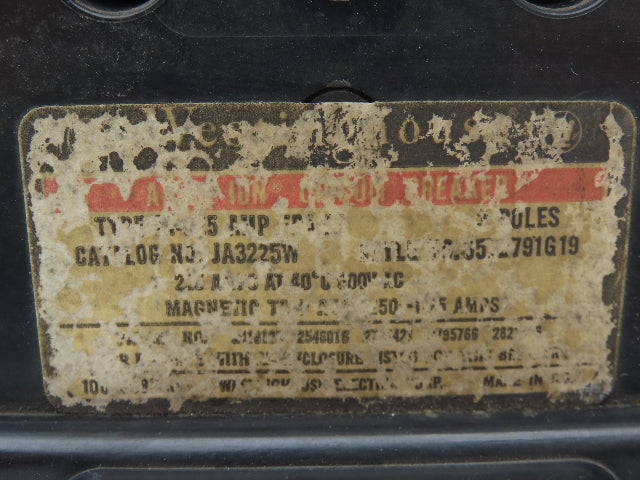 Westinghouse JA3225W 3-Pole Circuit Breaker 225A 600VAC Magnetic Trip