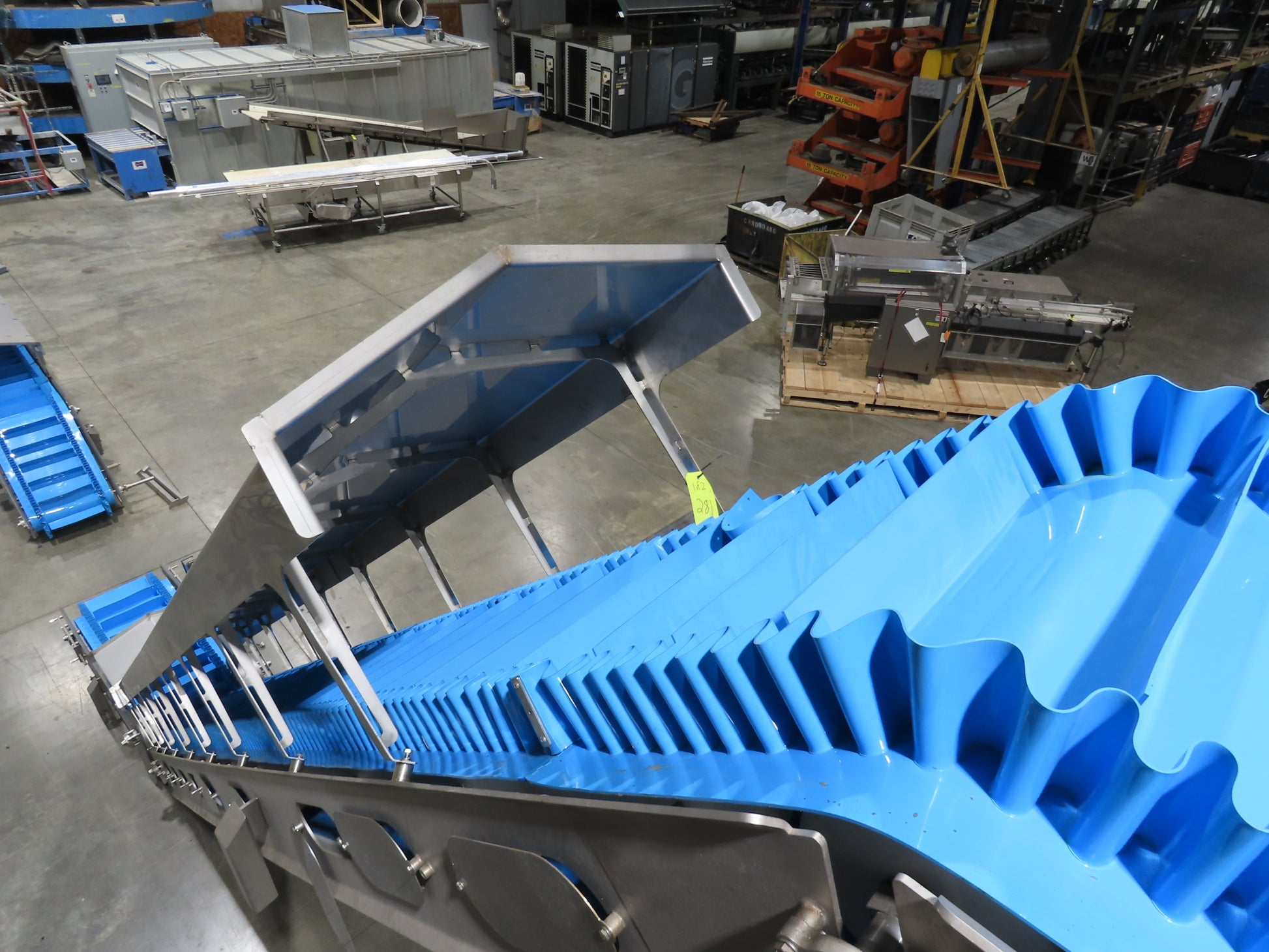 - Conveyor belt is in good clean condition with 4" cleats and 4" sides.