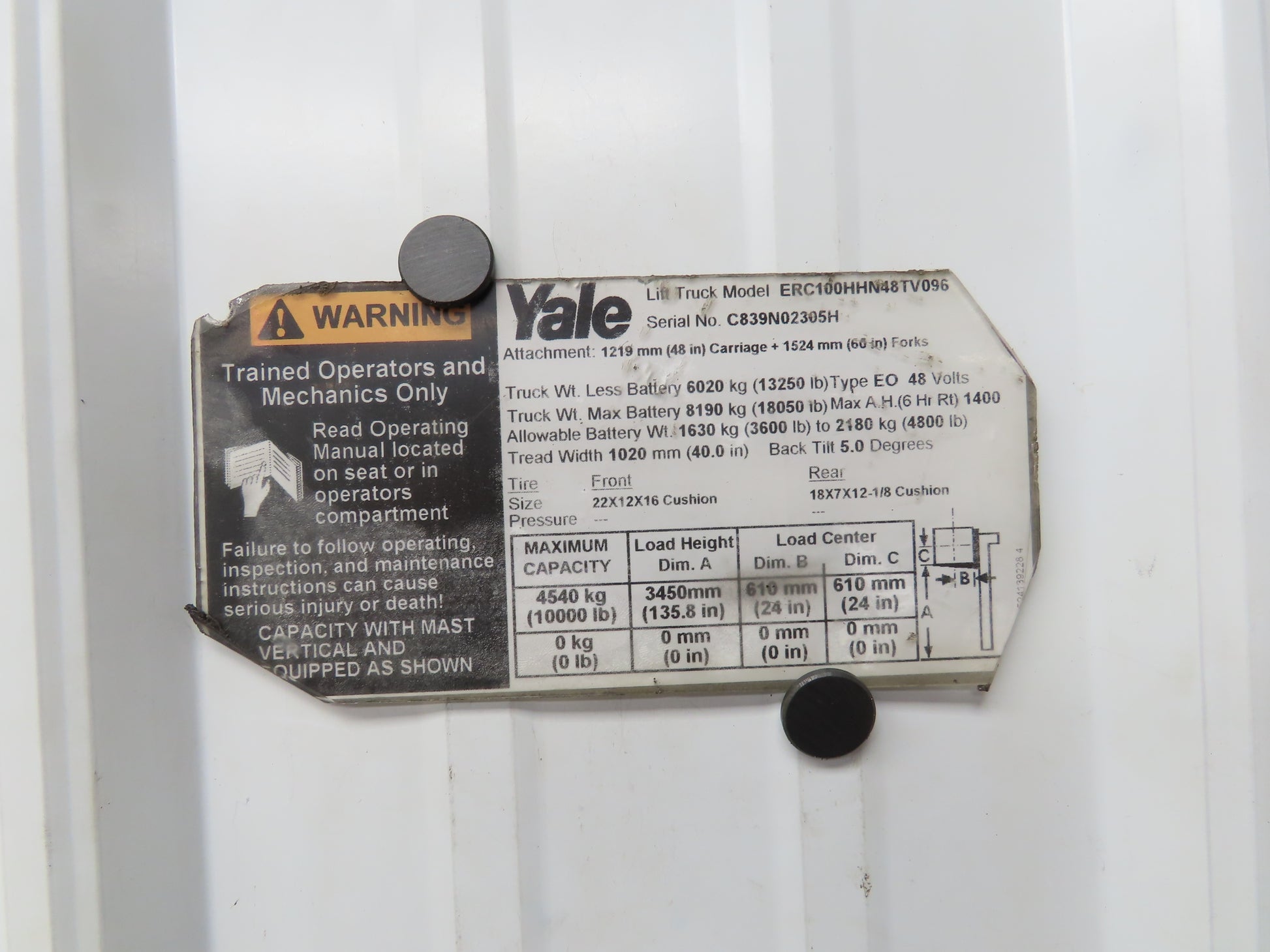 - Taken off of a ERC100HHN48TV096 Yale forklift.