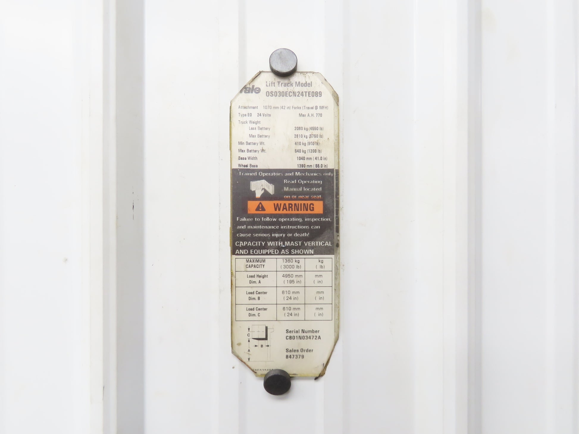 - Taken off of a Yale 0S030ECN24TE089 order picker forklift.