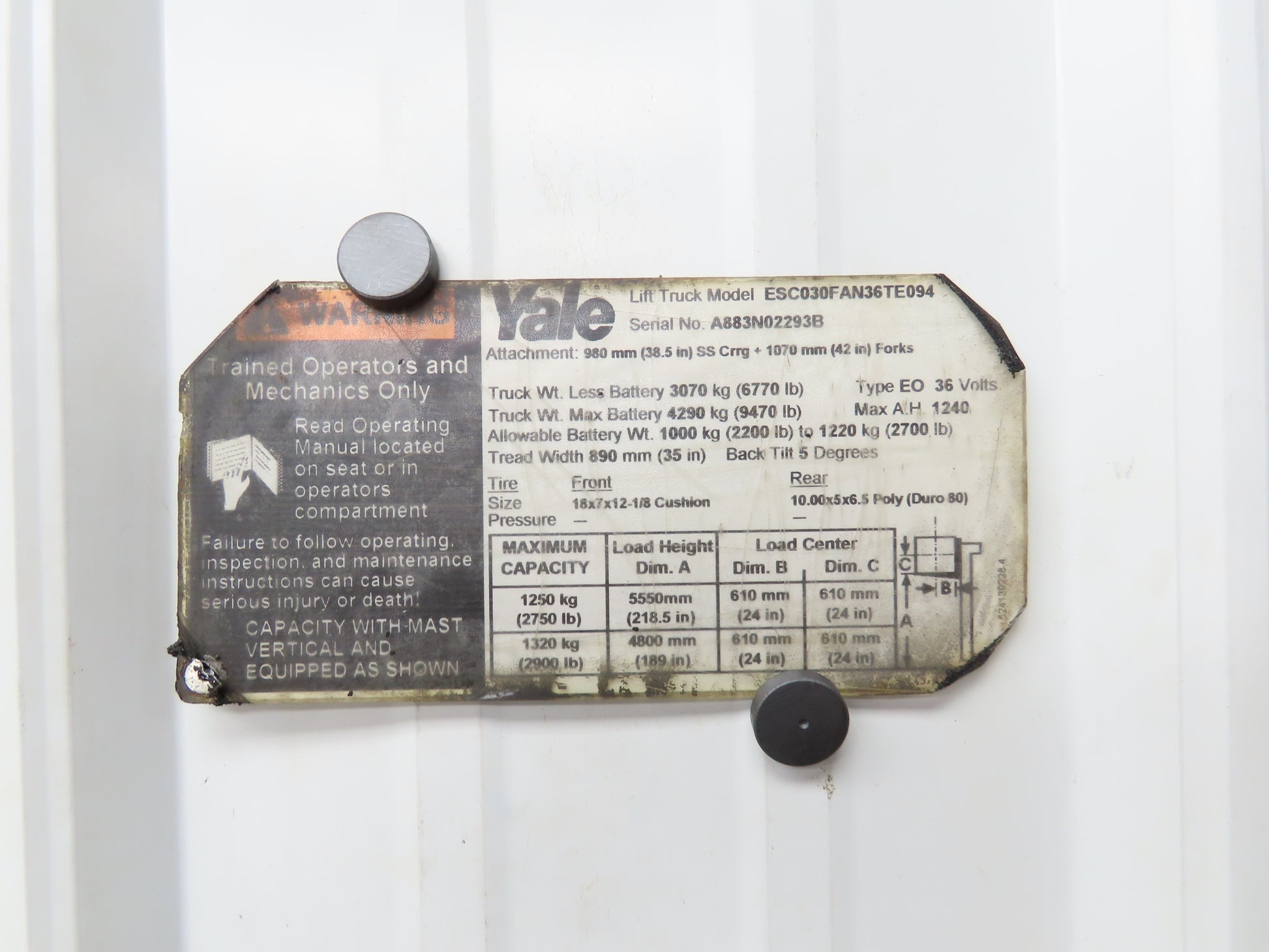 - Taken off of a ESC030FAN36TE094 Yale stand on forklift.