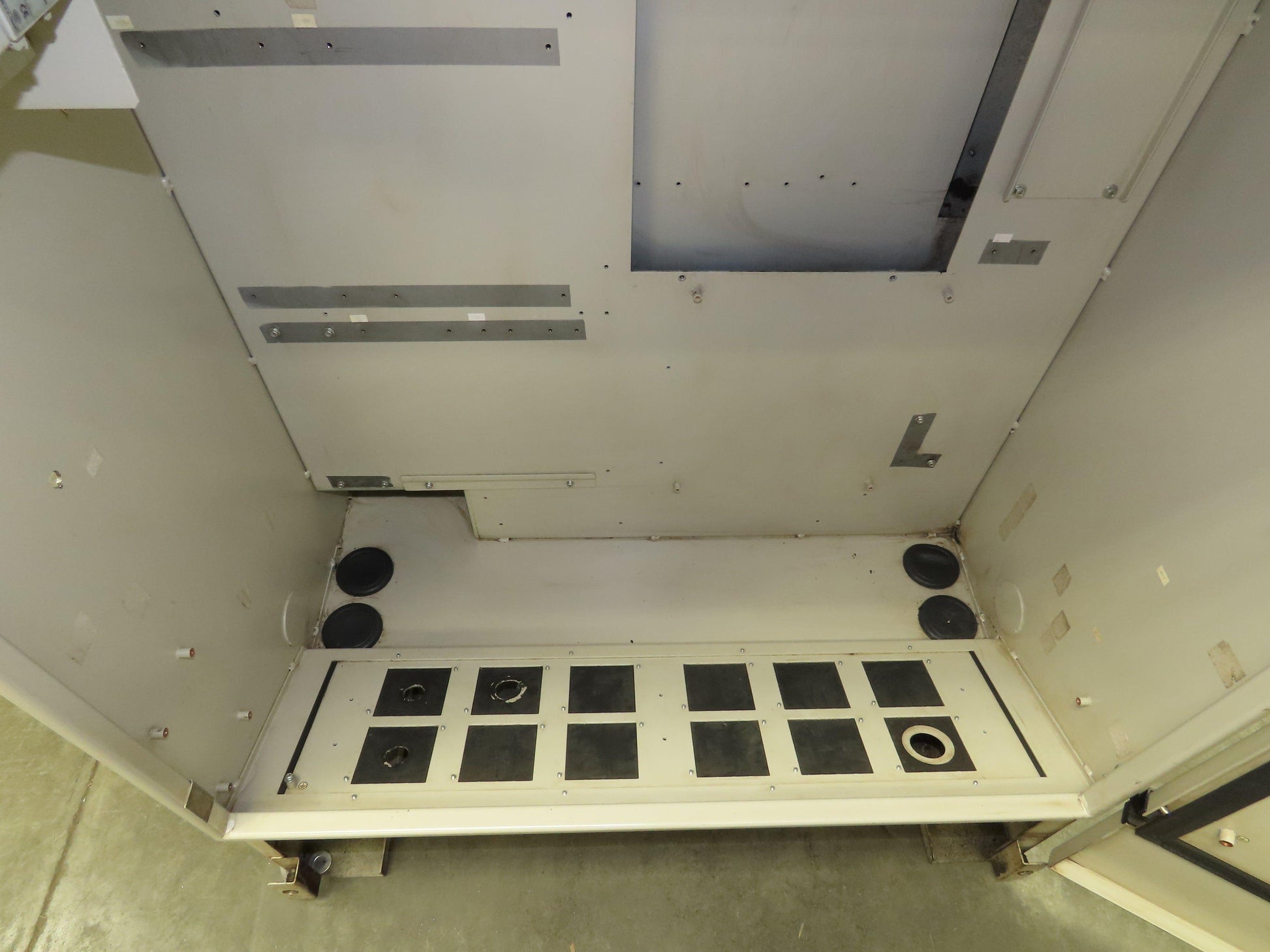 - This enclosure is dual entry. Back panel can be removed. Some of the screw heads are stripped due to over torque.