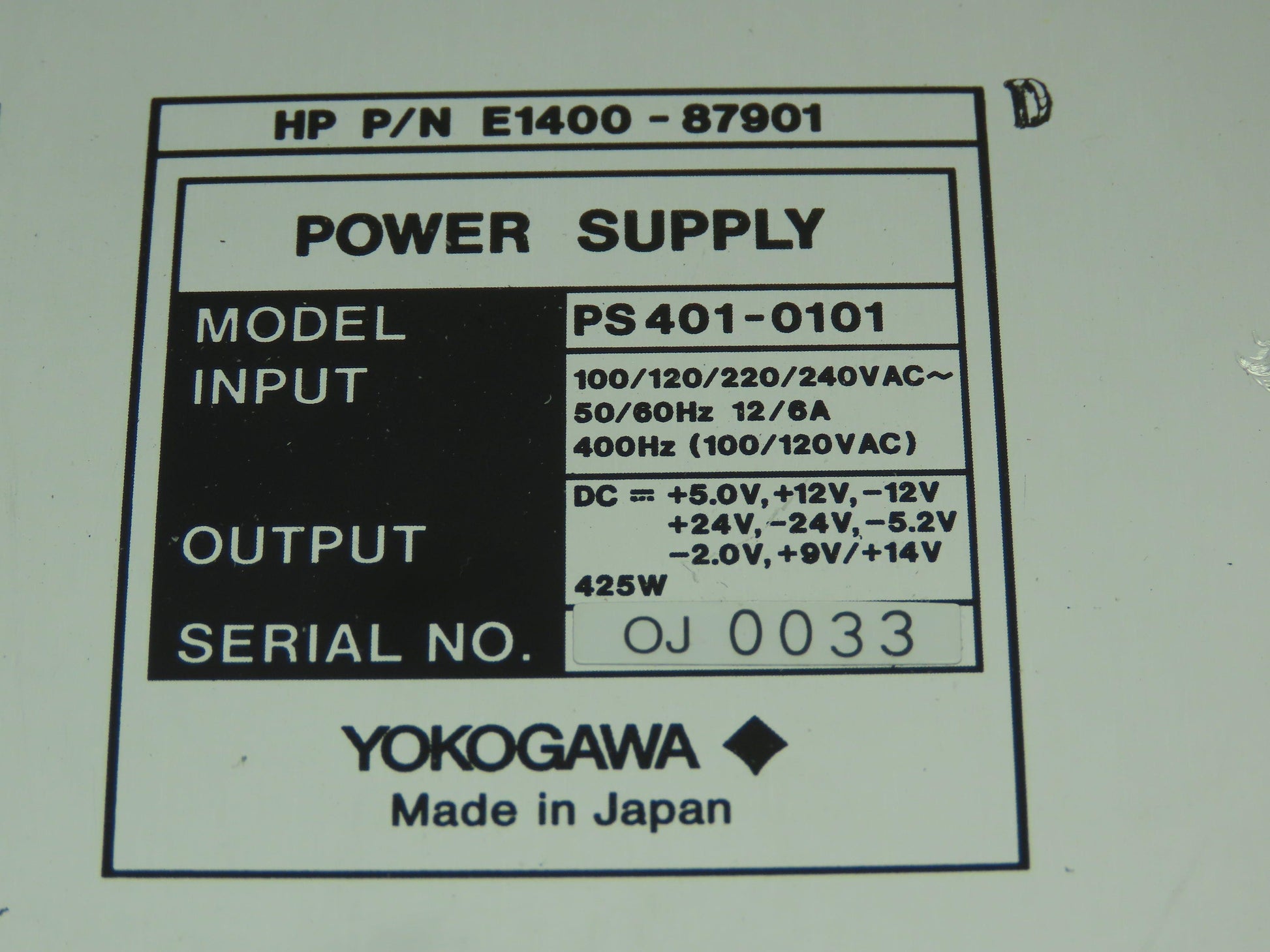 Yokogawa PS401-0101 Power Supply HP 1400-87103